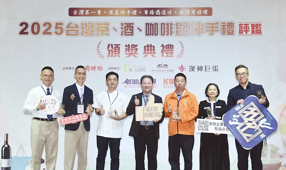 To unearth Taiwan’s premier souvenirs and provide the ultimate shopping guide for consumers, the "2025 Taiwan Tea, Wine, Coffee, and Souvenir Evaluation"—organized by Commercial Times, co-organized by Q square, Taichung Train Station Railway Cultural Park, and Hanshin Arena Shopping Plaza, and sponsored by Janfusun Fancyworld—successfully attracted enthusiastic participation from numerous businesses across Taiwan. The awards ceremony was held on the 11th at the Great Skyview Hotel, where the "Ti-Hu Golden Praise Award," "Ti-Hu Treasure Award," and "Ti-Hu Popularity Award" were presented to commend corporate dedication to product development and to recognize the local flavors that have gained widespread public favor.
