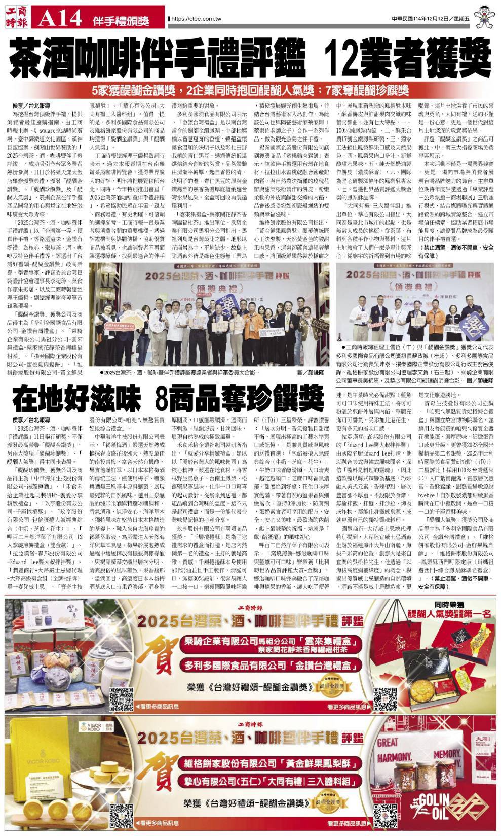 【Commercial Times】Tea, Wine, Coffee, and Souvenir Evaluation: 12 Vendors Win Awards